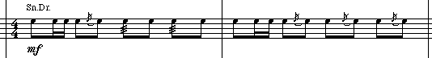 | 76 | Mar., Xylo | octaves on beat 1 (add F an octave below what’s written) |
