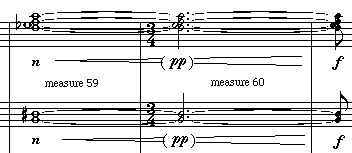 | 58-61 | Trombones | move entrance to m.59; delay cresc. (to “f”) (add “(pp)”):